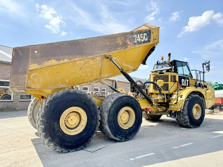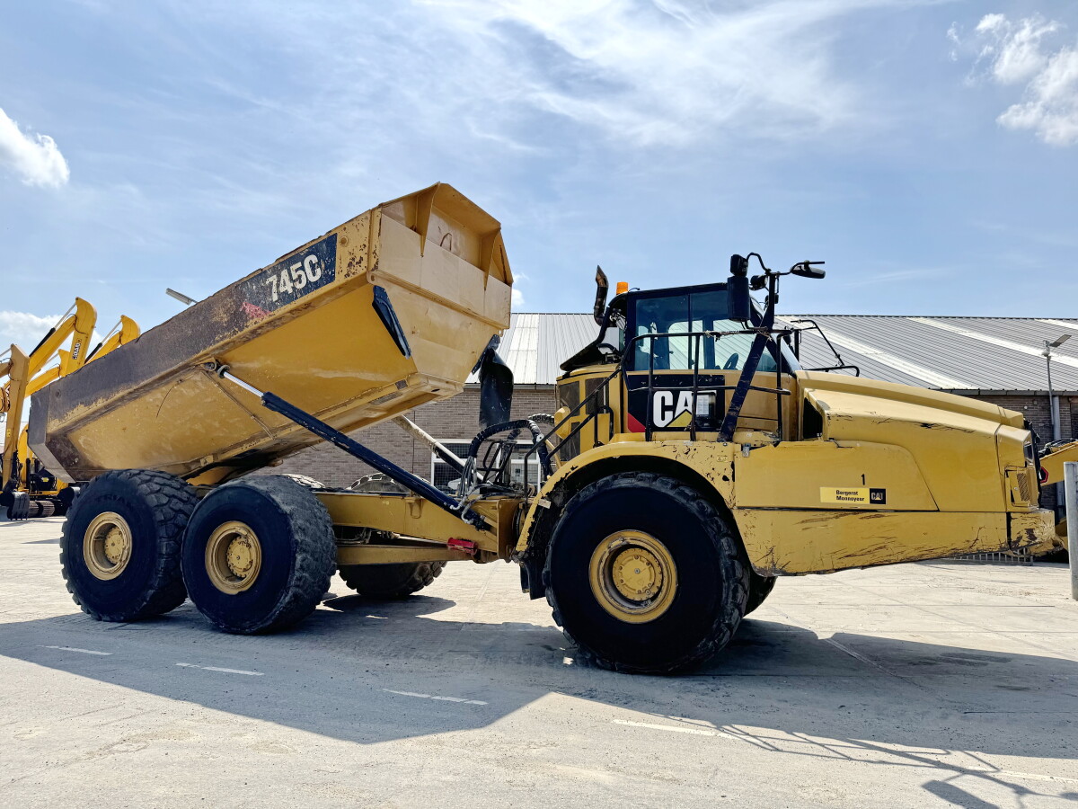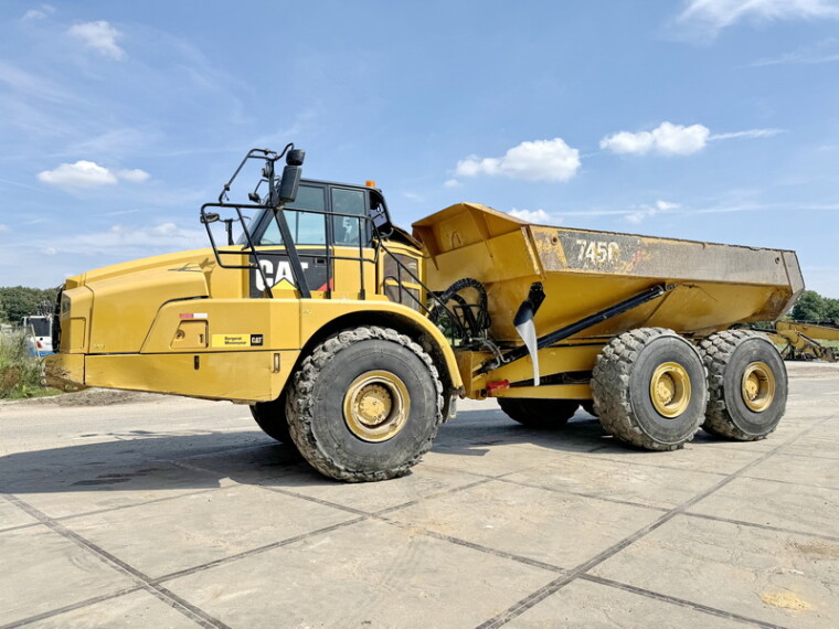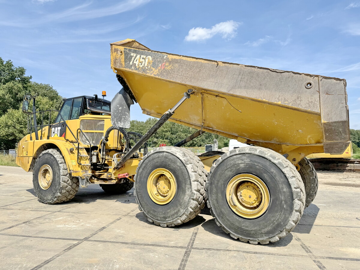 Das Gesamtgewicht dieses Caterpillar 745C beträgt 33246 kg und die Abmessungen sind 11.40 x 3.45 x 4.05. Darüber hinaus ist dieser 745C mit Electrical Mirrors, Klimaanlage, Radio, Zentral Schmieranlage ausgestattet.