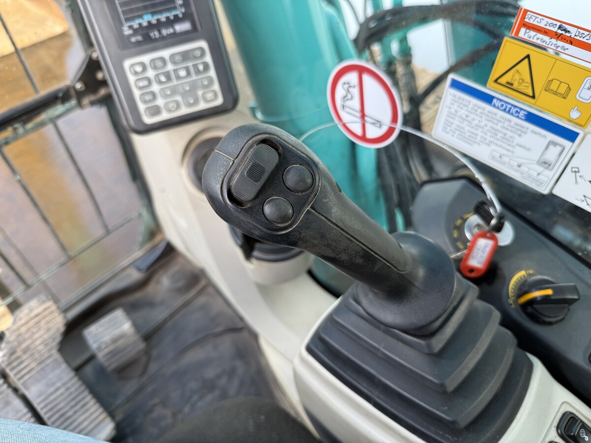 Das Gesamtgewicht dieses Kobelco SK350LC-10E beträgt 38000 kg und die Abmessungen sind 11.32 x 3.20 x 3.53. Darüber hinaus ist dieser SK350LC-10E mit Camera, Radio, Heated Seat, Schnellwechsler, Extra hydraulische Funktion, Hammer, Zentral Schmieranlage ausgestattet.